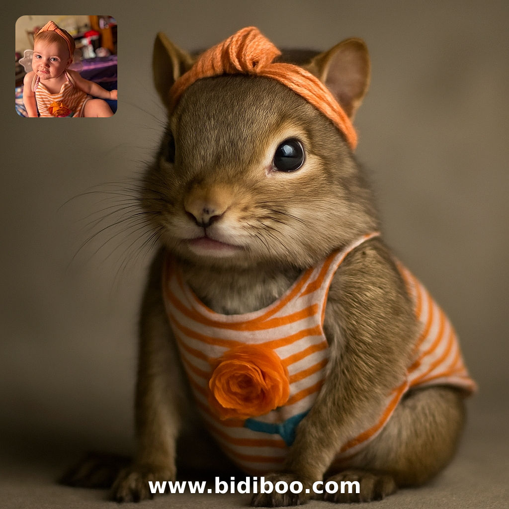 • A charming toddler with a peach-colored headband and striped outfit sits comfortably, sporting a curious and slightly mischievous expression. The soft focus background highlights the child's adorable face and playful vibe, making it a heartwarming snapshot.